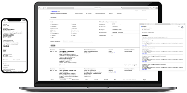 During the program public presentations are organized and the residency culminates in an open studio which is an integral part of our program of exhibitions. The exhibition is open to the public for the last days of the residency, during which special visits and presentations are coordinated.